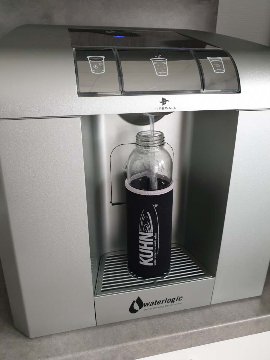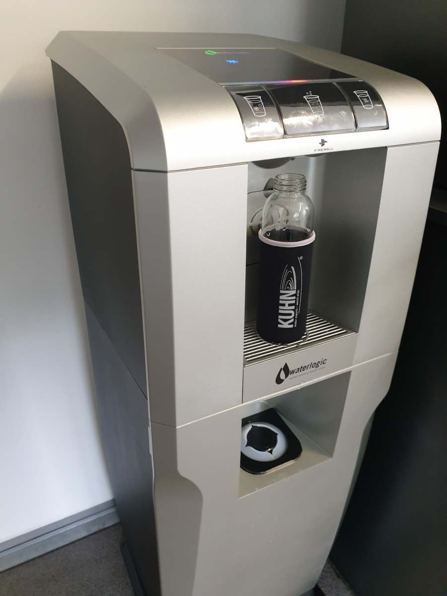 Nicht nur für heiße Sommertage, sondern für‘s ganze Jahr über hat die Firma KUHN für die Mitarbeiter Wasserspender der Marke Waterlogic aufstellen lassen. Es steht nun gekühltes Wasser mit und ohne Gas, sowie Leitungswasser zur Verfügung.