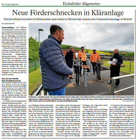 Seit 2002 betreiben verschiedene Kommunen aus dem Altkreis Buchen gemeinsam eine mobile Schlammentwässerung. Die Zentrifuge und alle notwendigen Geräte wie Pumpen, Flockungsmittelaufbereitung und -dosierung, sowie die dazugehörige Steuerung sind in einem LKW-Anhänger untergebracht. Dieser Anhänger wird vom örtlichen Maschinenring auf die entsprechenden Anlagen gebracht und dort vom jeweiligen Fachpersonal aufgestellt, angeschlossen und bedient. Die Organisation wird von der Stadt Buchen übernommen. Reparaturen werden größtenteils von der Abteilung Service der KUHN GmbH übernommen und elektrische Fehler werden hier vom Kompetenzzentrum für Elektrotechnik und Automatisierung zeitnah und zur vollsten Zufriedenheit der Kunden instandgesetzt.