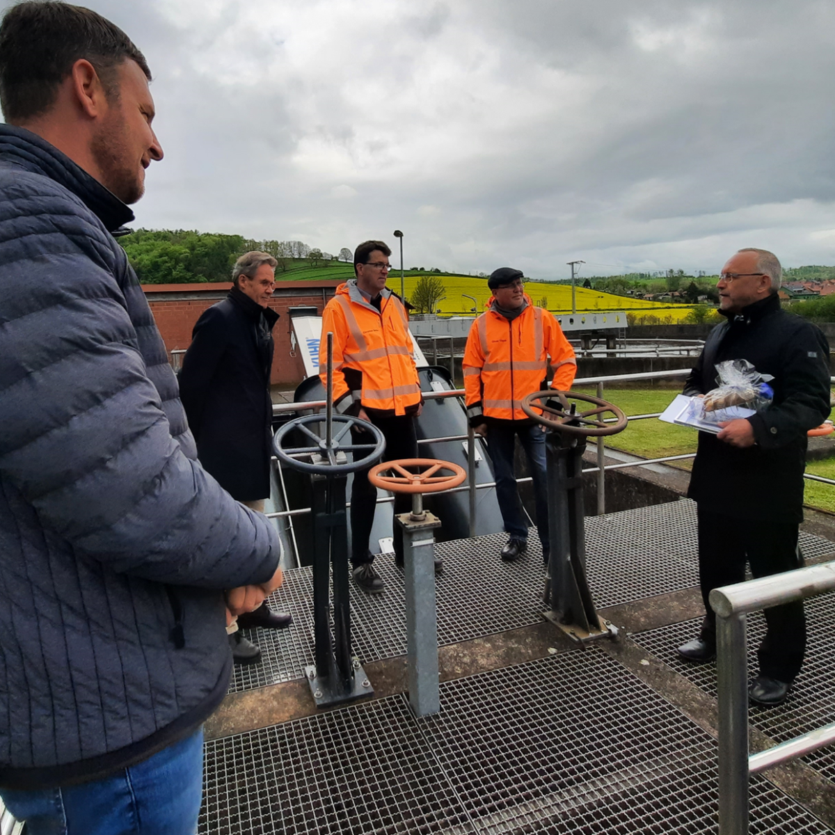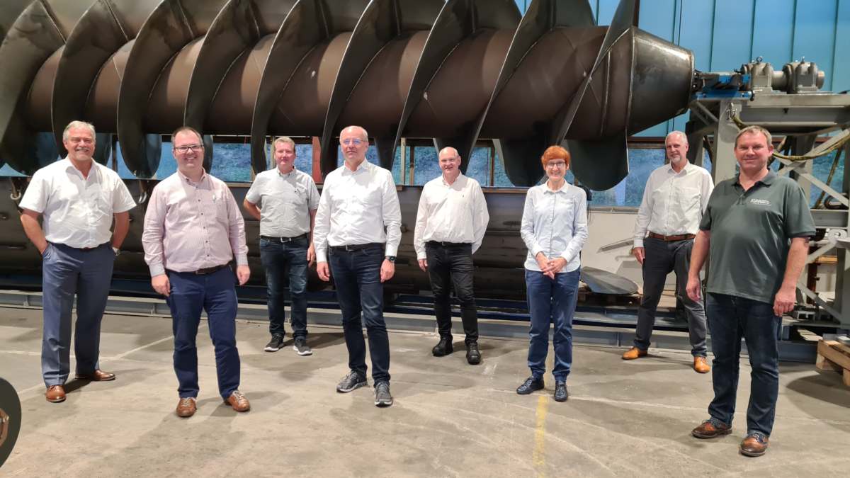 Der Staatssekretär warf ein, dass gerade das Handwerk beim Erreichen der Klimaschutzziele helfe. „Die Politik kann das Problem aber nicht allein lösen – die Gesellschaft muss mithelfen und vermitteln, dass das Handwerk mehr denn je goldenen Boden hat. Echte Klimaschützer lernen im Handwerk!“, erklärte er. Auch durch moderne Technik könne man viele Probleme lösen und müsse gewisse Flexibilität in die Tat umsetzen. In diesem Sinne sicherte der Staatssekretär zu, die in Höpfingen gewonnenen Erkenntnisse und Einblicke mit ins Umweltministerium zu nehmen. Dr. Michael Kuhn wies weiterführend auf die Situation der Wasserförderschnecken hin, die nicht jeder Experte akzeptiert: Nachdem gewisse Verletzungsgefahr für Fische nicht ausgeschlossen werden könne, kämpfe man als Firma gelegentlich gegen Windmühlen und hoffe auf eine Entspannung der Situation.