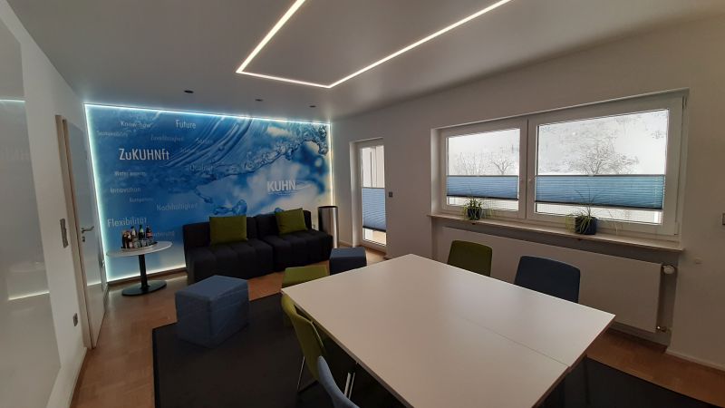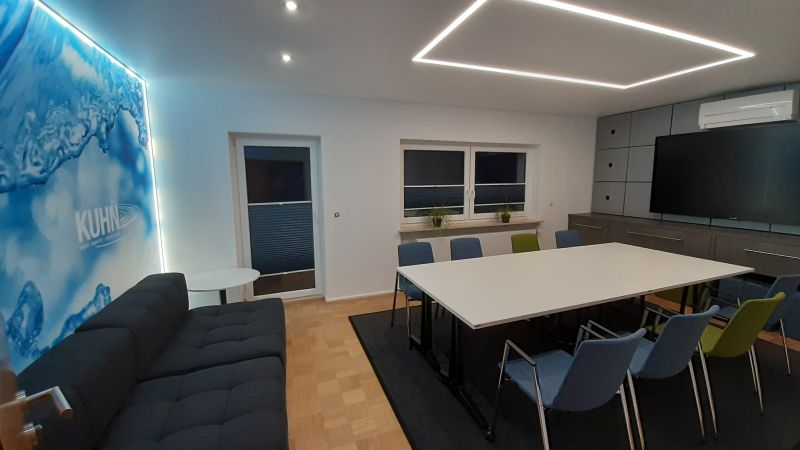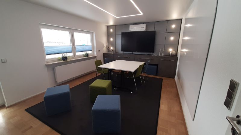 Der Raum wurde nicht auf konventionelle Art eingerichtet, sondern erhielt ein ansprechendes und legéres Flair. Er wird nicht nur den Anforderungen für moderne Kommunikation wie z.B. Onlinemeetings gerecht, sondern dient auch als Plattform für lockere interne Besprechungen, Ideenfindungen und zum Wissensaustausch unserer Abteilungen und Arbeitsgruppen.